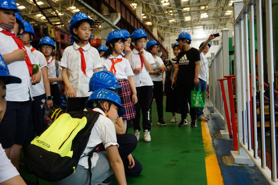 當看到自動化大型沖壓線時,學生們目不轉睛的看著機械手臂從一臺設備的“嘴里”拿出,放到另一臺設備的“嘴里”,都感到非常驚訝!隨行的老師和家長們不約而同地發出贊嘆聲,感慨高科技的神奇以及小鴨發展的日新月異。