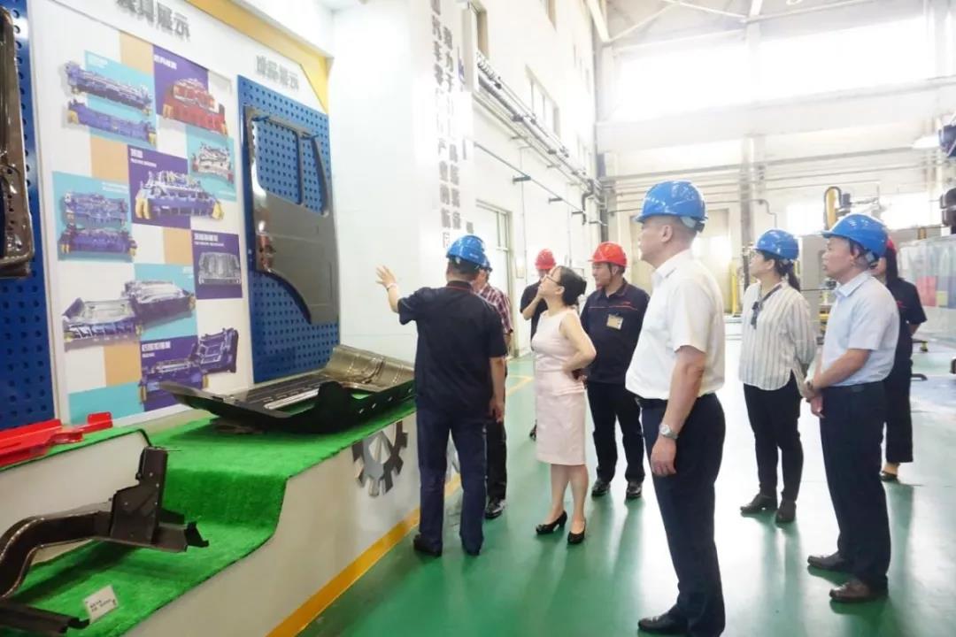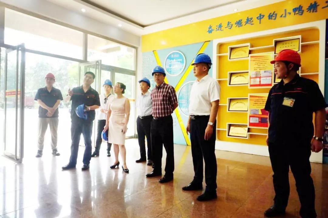 李永剛董事長陪同唐瑞勇副總裁一行參觀了小鴨精工產品展廳和生產車間,詳細了解集團技術研發、人才建設、智能制造及新舊動能轉換等情況。