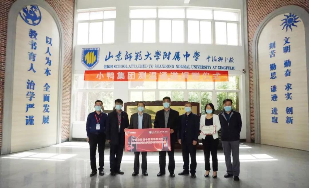 瀏覽量:05月15日,小鴨精工機械公司將價值17萬余元的兩臺智能測溫通道分別捐贈給了齊魯工業(yè)大學(xué)和山東師范大學(xué)附屬中學(xué),集團黨委副書記、紀(jì)委書記、工會主席邵紀(jì)華代表小鴨集團及小鴨精工親自將測溫通道送到兩所學(xué)校。齊魯工業(yè)大學(xué)(山東省科學(xué)院)黨委委員、副校長(副院長)曹茂永及山東師大附中校長荊兆晶接受捐贈并分別講話表達(dá)了感謝之情。