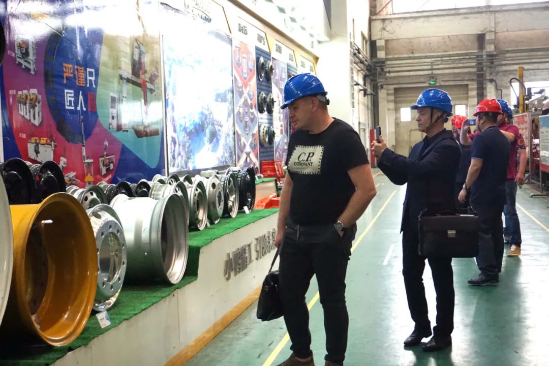 小鴨精工國際發展部經理張海濤、智能裝備事業部副經理何通陪同薩馬拉客戶深入生產車間參觀了解。參觀過程中,客戶對熱處理、車輪設備、車輪模具等設備和產品有著濃厚興趣,不時駐足拍照并進行技術交流。