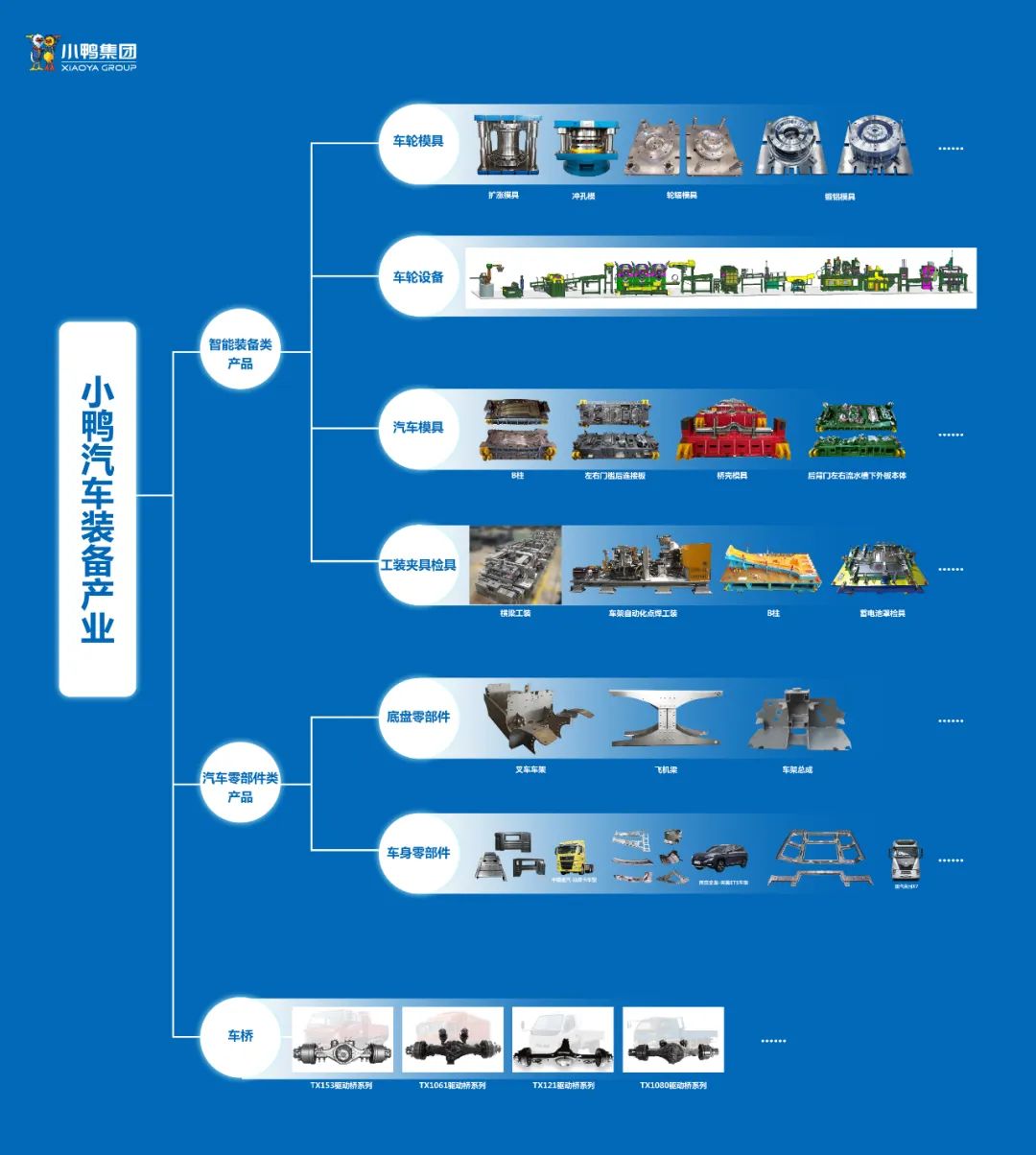 小鴨精工以研發制造智能裝備類產品、汽車零部件類產品、車橋產品為核心產品板塊,涵蓋了汽車模具、工裝、車輪模具、車輪設備、機器人應用、激光熔覆淬火機、薄板零部件、厚板零部件、車橋產品。公司旗下產品曾多次獲得中國模協“精模獎”、山東知名品牌、山東省制造業單項冠軍產品,連續三年入山東首臺(套)技術裝備及關鍵核心零部件生產企業及產品名單,是國家級“高新技術企業”,國家級專精特新“小巨人”、省級“企業技術中心”、市級工業企業“一企一技術”研發中心”。